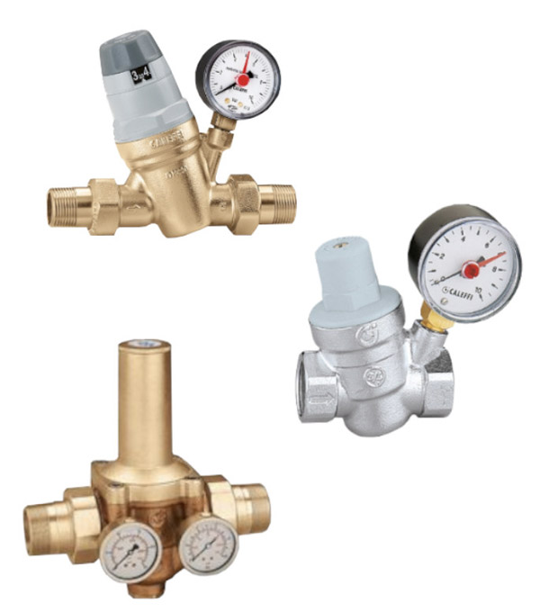 Las válvulas reguladoras CALEFFI son válvulas reguladoras de presión en bronce de bajo costo, excepcionales para el manejo de agua fría (temperaturas menores a 85 °C), aire (temperaturas menores a 70°C), nitrógeno o gases inertes. Frecuentemente se utilizan para proteger calentadores e instalaciones hidráulicas de casas y oficinas ya que su tamaño es pequeño y estilizado.